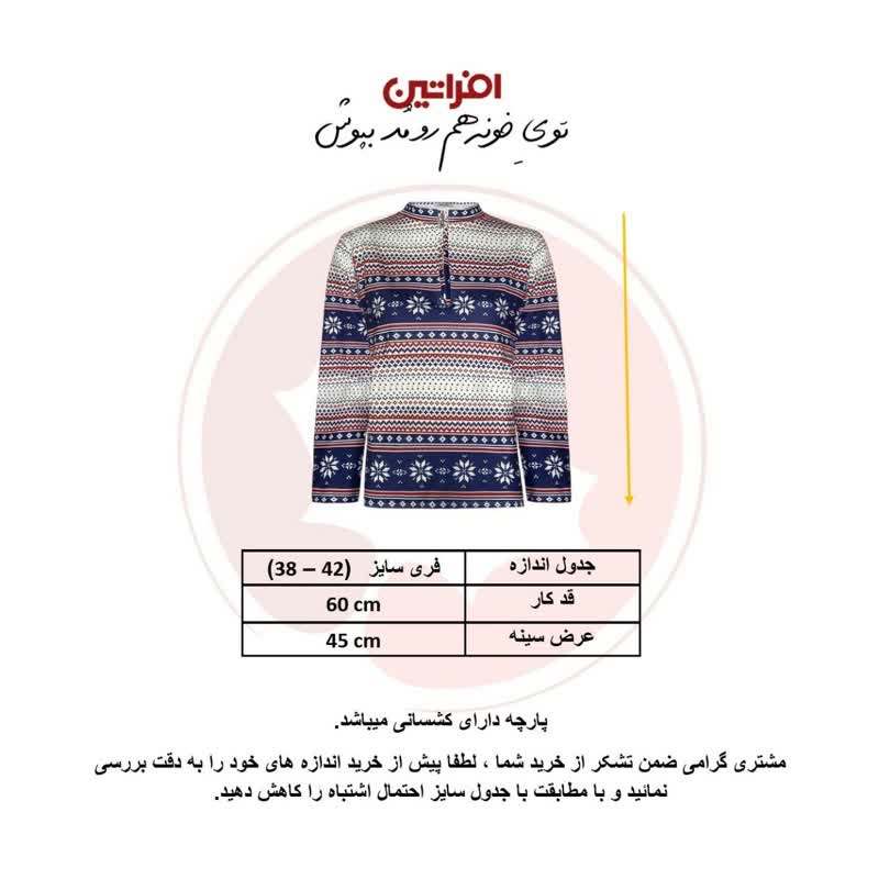 این بلوز زنانه با سایزبندی انعطافپذیر (مناسب سایزهای 38 تا 42) در دسته تولیدی پوشاک زنانه قرار میگیرد و برای خانمهایی که به دنبال استایلی ساده، شیک و گرم برای روزهای خنک هستند، انتخابی عالی خواهد بود.