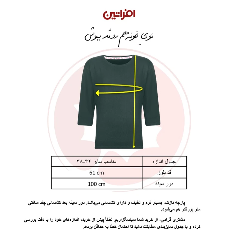 بلوز آستین سه ربع زنانه افراتین مدل 7577 رنگ سبز