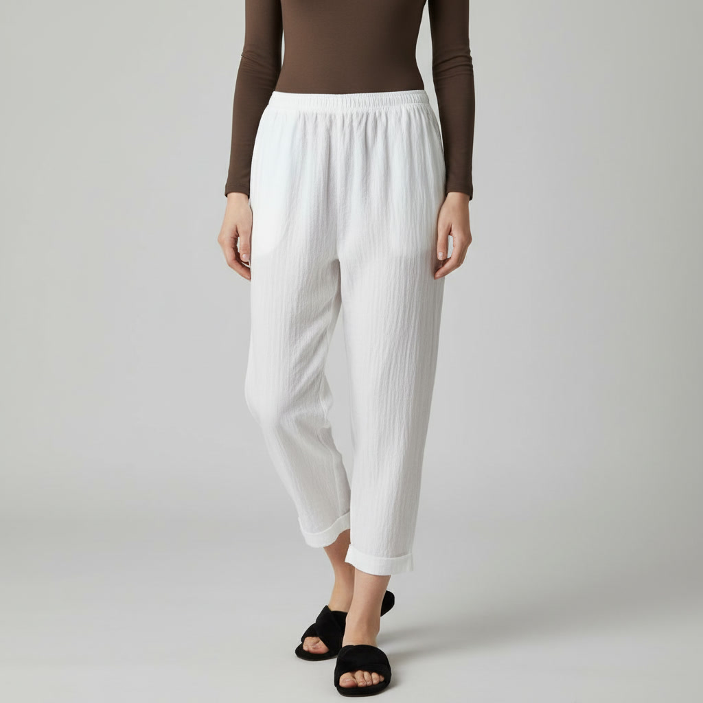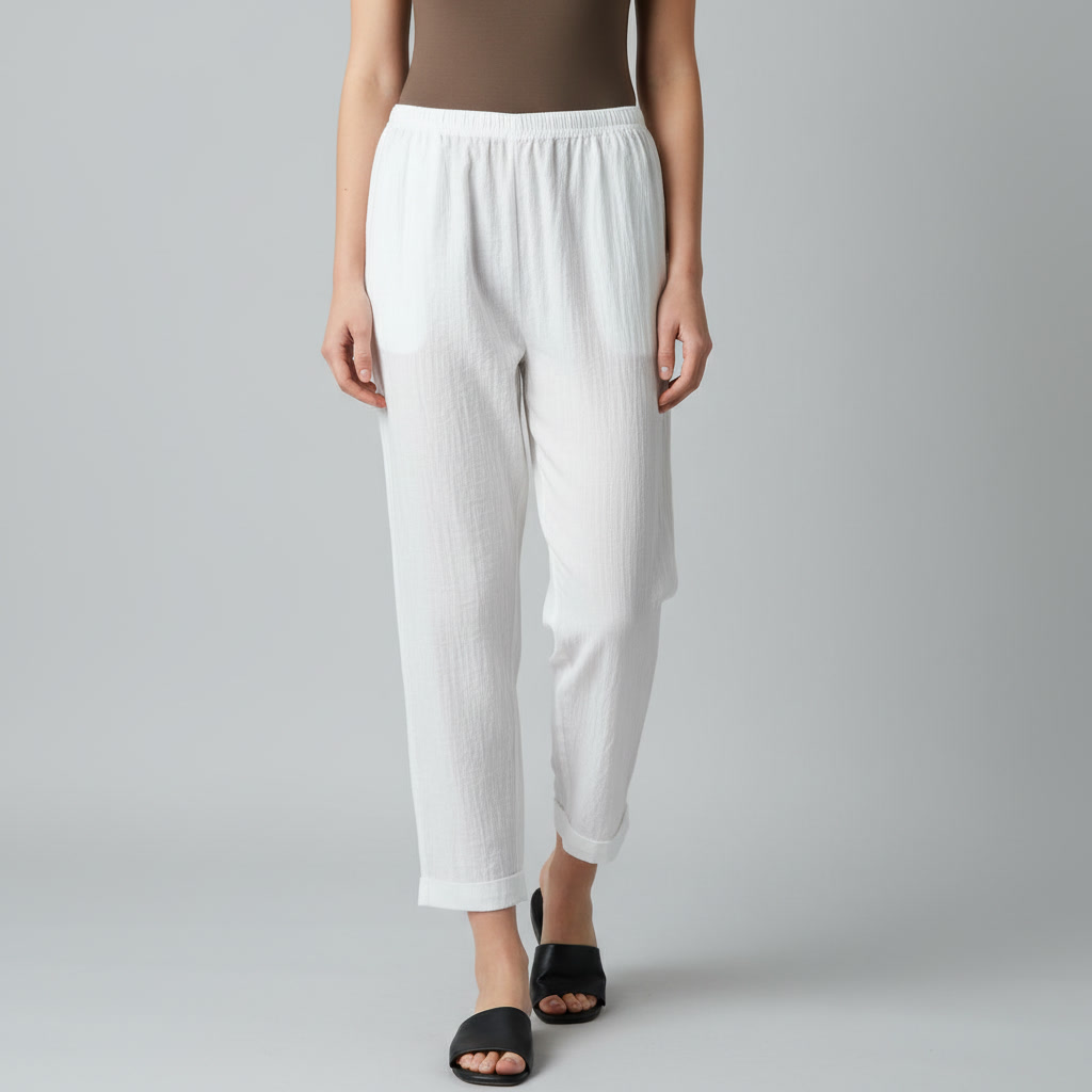 شلوار مام فیت زنانه | مدل دمپا پاکتی سفید 5559 از جنس آیوا با کیفیت، بدون آبرفت و با استایلی خنک و شیک. این شلوار راحت و کاربردی، مناسب استفاده خانگی، مهمانی یا حتی خیابان است و به راحتی با انواع تاپ و بلوز ست میشود.