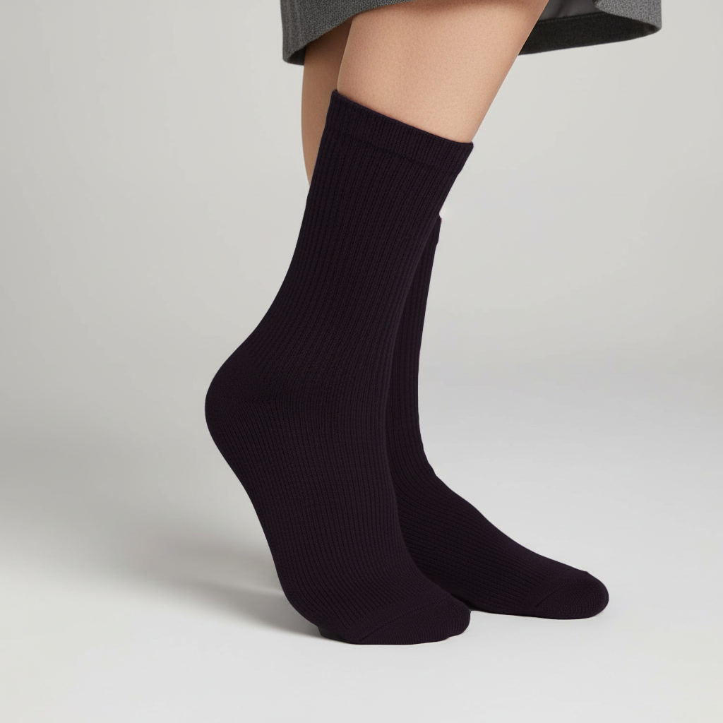 جوراب ساق بلند زنانه | رنگ مشکی طرح ساده با بافت نرم و کشسان، مناسب برای پوشیدن روزمره و راحتی طولانی مدت. طراحی شیک و کلاسیک که به استایل شما جلوهای خاص میدهد.